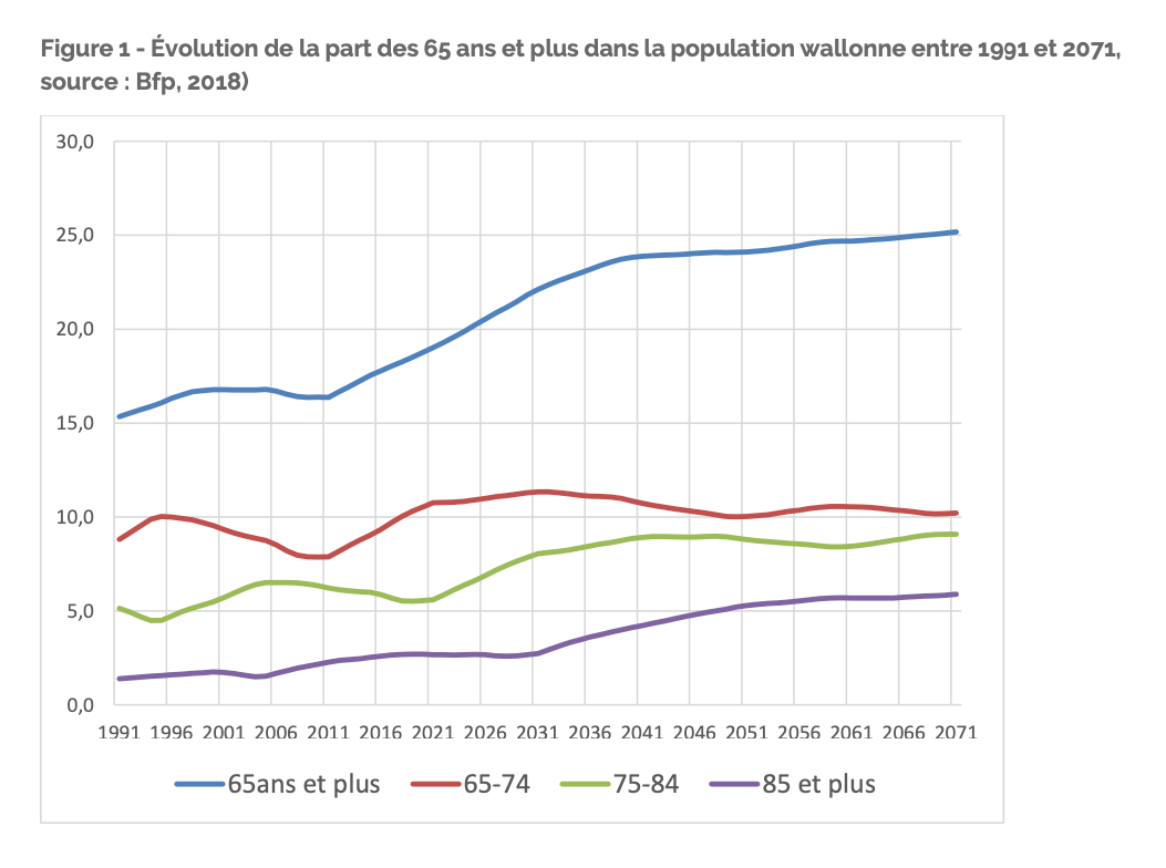 En Wallonie iWEPS2019 (…) Le vieillissement de la population est une tendance lourde mise en évidence par les analyses démographiques depuis de nombreuses années.
