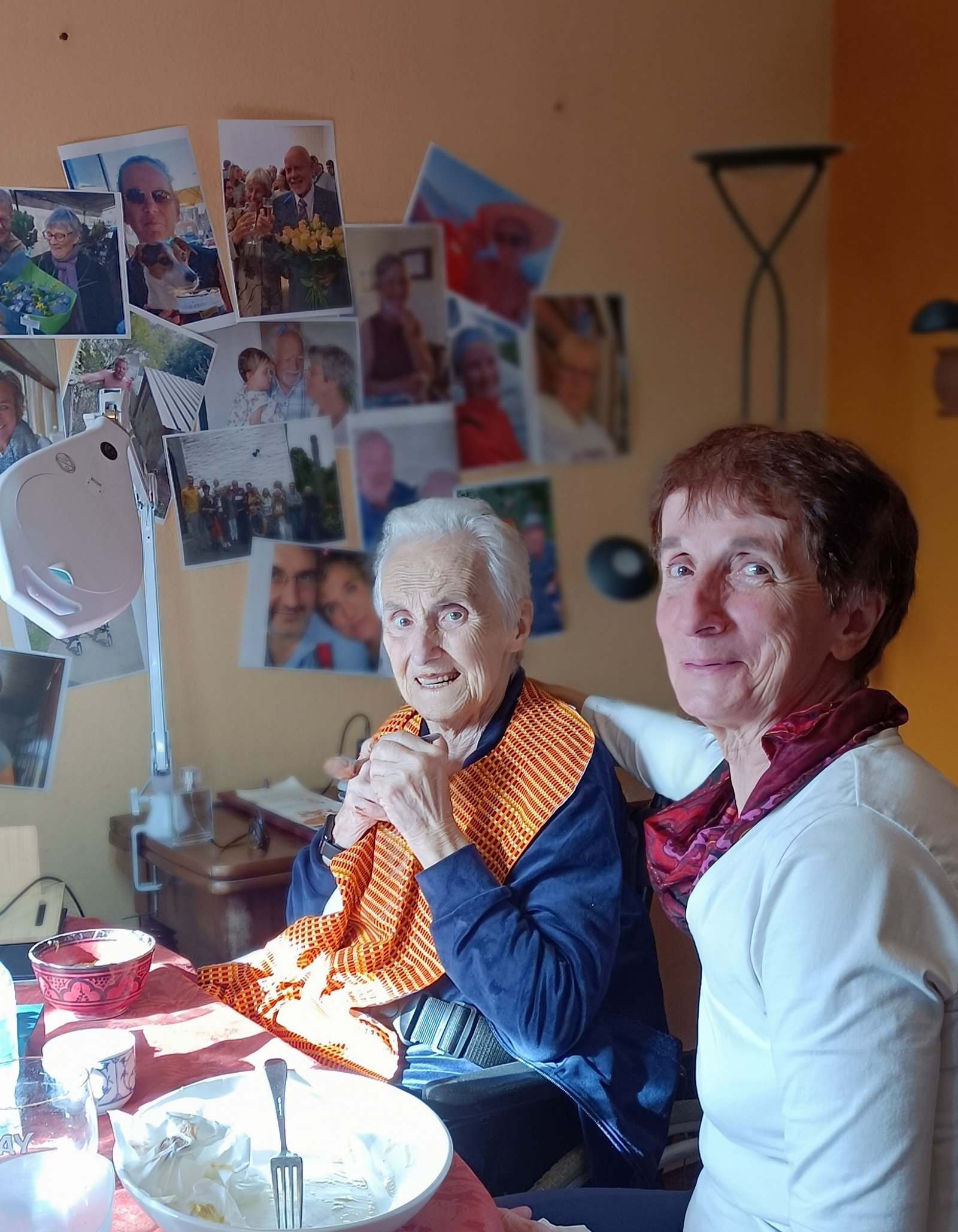 Mettre des photos au mur (j’avais rempli le mur de sa chambre d’hôpital pour faire des exercices de mémoire ou aussi permettre aux visiteurs de poser des questions sur qui étaient présents sur les photos)